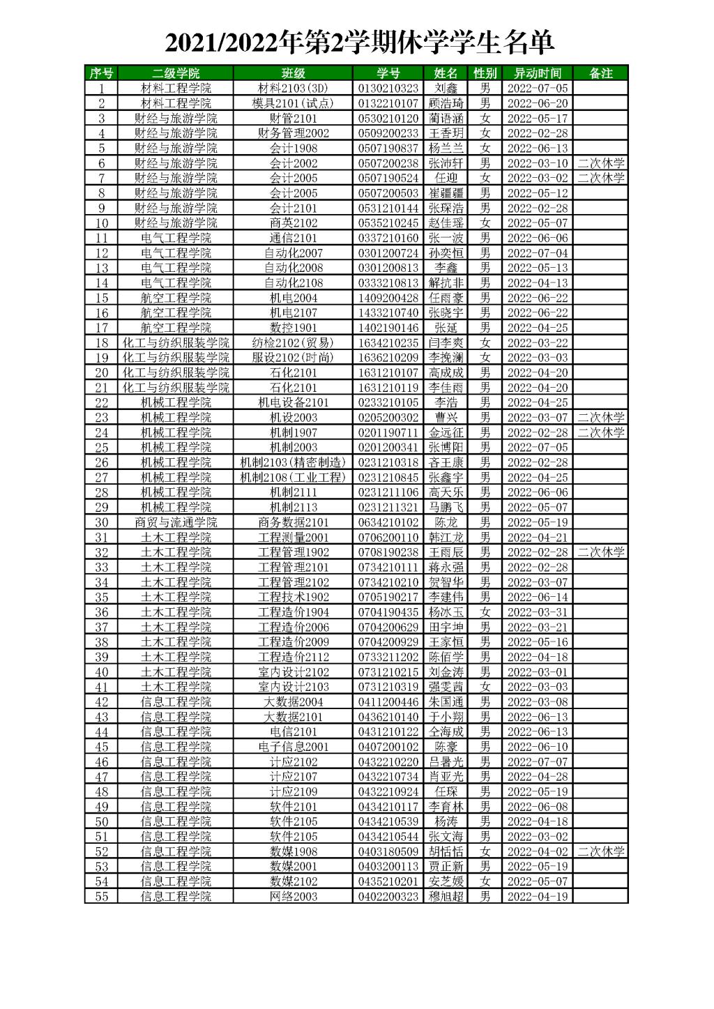 根据《陕西工业职业技术学院学籍管理规定》(陕工院院字〔2017〕114号)有关休、复学的规定,2021/2022年第2学期办理休学学生的复学时间已到期。为做好复学工作,现通知如下:
