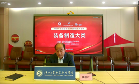 在职业院校装备制造大类课程思政集体备课会中,我校副校长梅创社,在点评环节作为特邀专家对课程思政说课、教学展示逐一进行点评,并围绕职业院校装备制造类课程思政建设问题与课程团队进行了互动交流。